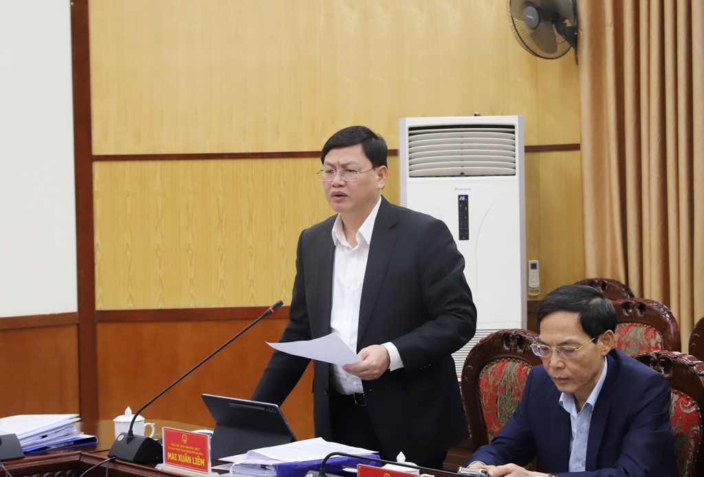 | Phó Chủ tịch Thường trực UBND tỉnh Mai Xuân Liêm phát biểu tại phiên họp. |