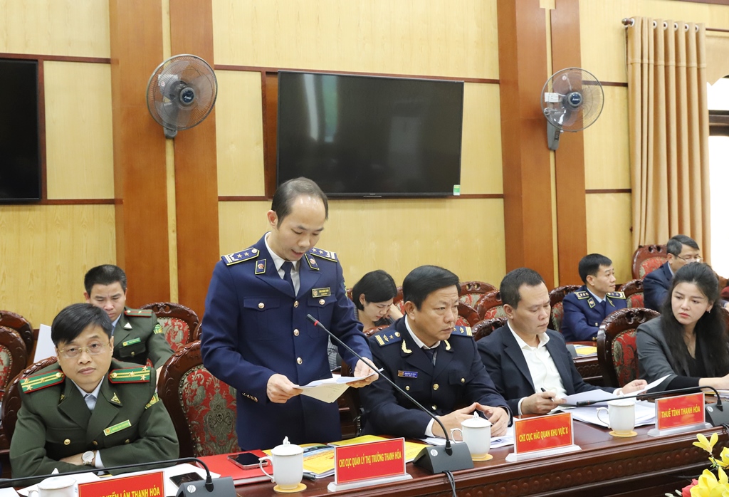 Đại diện lãnh đạo Chi cục Quản lý thị trường Thanh Hóa báo cáo tại hội nghị.