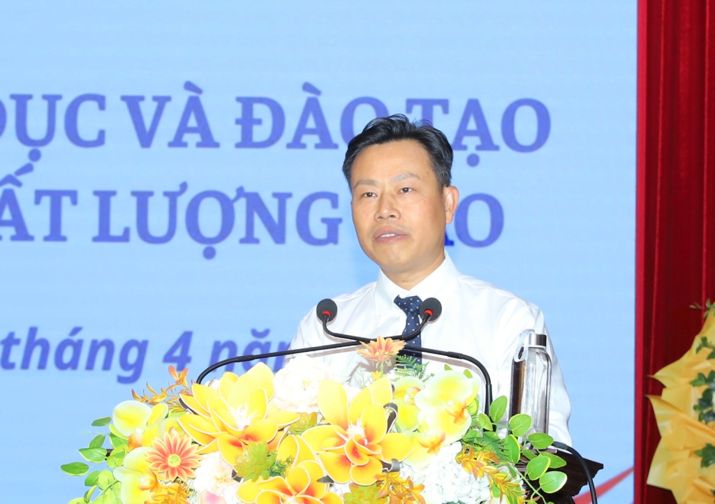 | GS.TS Lê Quân, Thứ trưởng Bộ Giáo dục và Đào tạo, phát biểu tại hội nghị. |